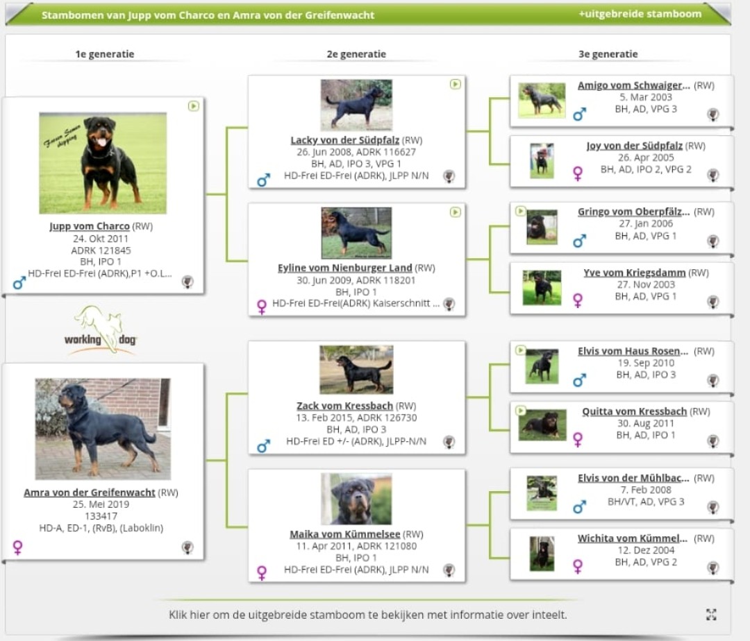 Op 12 april 2026 zijn de puppy's geboren uit de combinatie van: